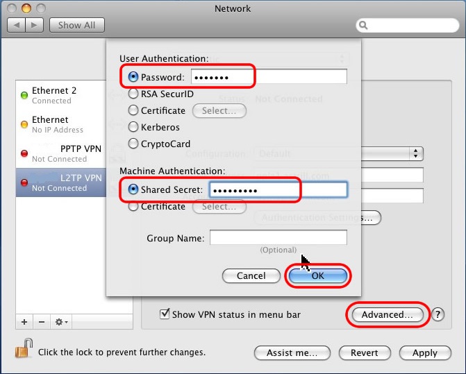 Follow these steps to setup L2TP VPN on Mac